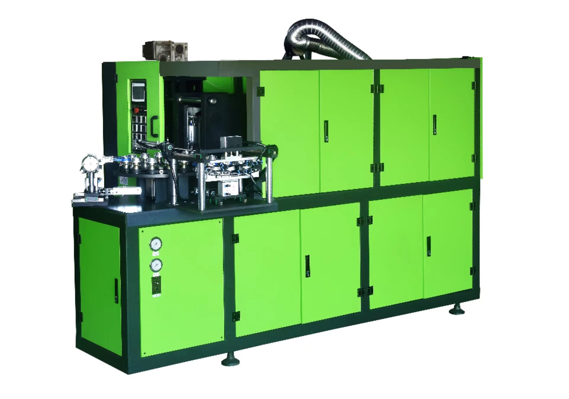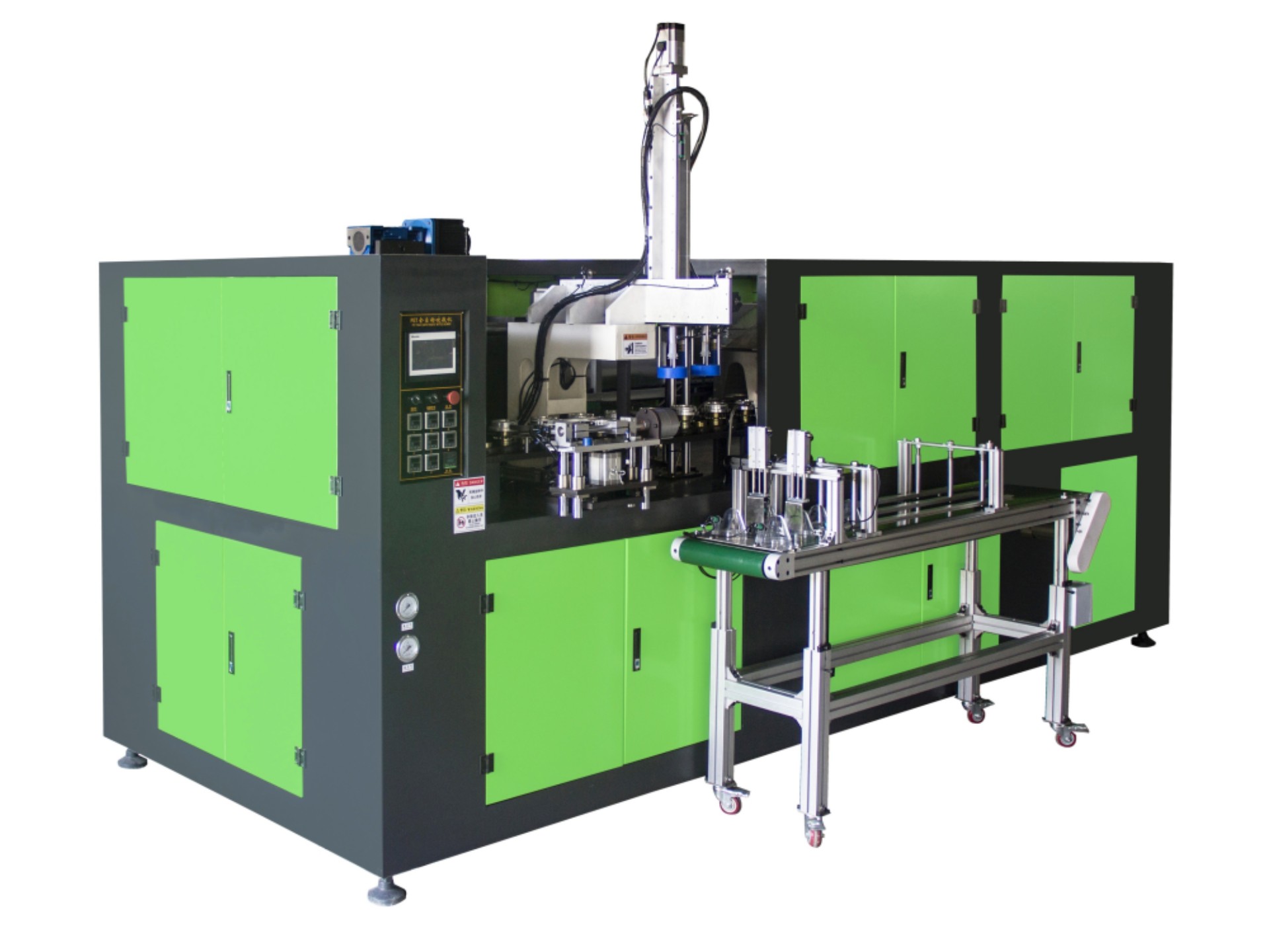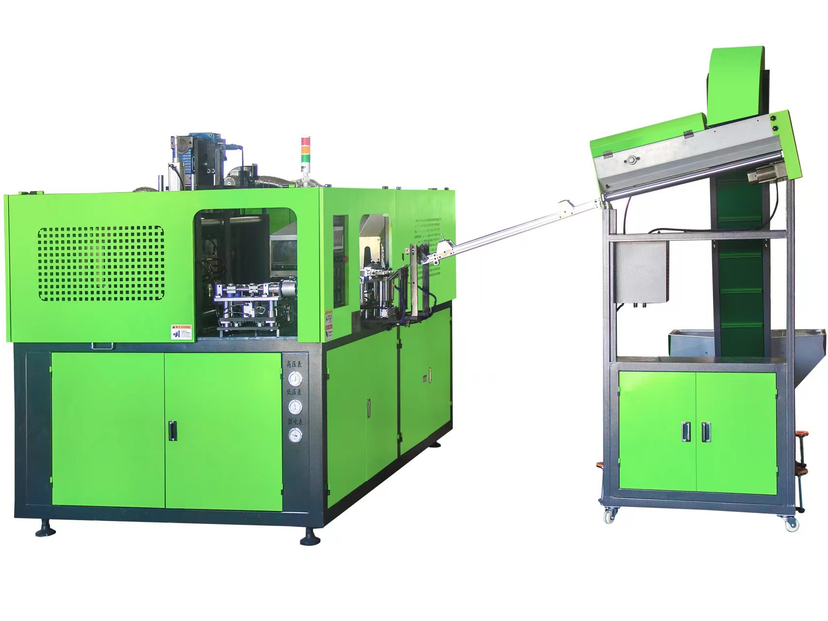 廣口一出二全自動(dòng)吹瓶機(jī)主要用于PC、PS、PET廣口易拉罐吹瓶生產(chǎn)